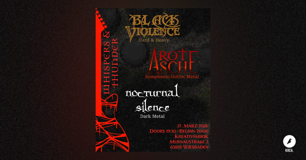 NOCTURNAL SILENCE – wenn Dunkelheit Klang wird. Gegründet 2009 in Grünstadt, formte sich NOCTURNAL SILENCE über viele Jahre und Besetzungswechsel hinweg zu dem, was sie heute sind: eine feste Einheit aus Basti (Gesang & Bass), Dorian und Alex (Gitarren), Patrick (Keyboard) und Karsten (Schlagzeug) mit Kompositionen, die düsteren Black Metal mit melancholischen, teils orchestralen Elementen verweben – inspiriert von Acts wie Draconian oder The Vision Bleak. Mit der 2024 erschienenen EP „Rotten Flowers“ entfalten sie ihren atmosphärischen Sound in voller Tiefe: roh, schwermütig und von dunkler Schönheit getragen. Wer sich auf ihre Klangwelt einlässt, begegnet intensiver Musik, die unter die Haut geht.