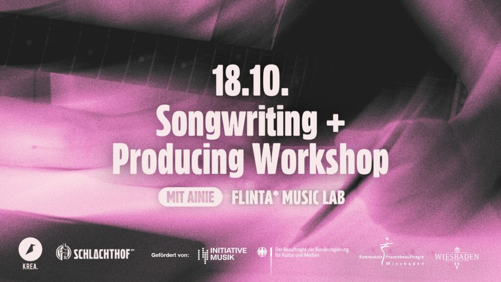 Die Workshopreihe FLINTA MUSIC LAB* richtet sich ausschließlich an FLINTA*-Personen. FLINTA* steht für Frauen, Lesben, inter, nicht-binäre, trans und agender Personen. Die Angebote dienen dem Empowerment und der gezielten Förderung von Menschen, die von patriarchalen Strukturen benachteiligt sind.Mit der Buchung eines Tickets bestätigen die Teilnehmenden verbindlich, dass sie der Zielgruppe FLINTA* zugehörig sind und diese Teilnahmebedingung zur Kenntnis genommen haben. Diese Bestätigung ist Voraussetzung für die Teilnahme. Solltet ihr doch nicht teilnehmen können, bitten wir um Info, sodass andere Interessentinnen nachrücken können. Kontakt: info@schlachthof-wiesbaden.de