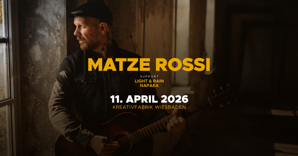 Matze Rossi, bekannt für seine ehrliche, handgemachte Musik, hat sich mit seinem Mix aus Singer-Songwriter-Folk, Indie und Punk in der deutschen Musikszene fest etabliert. Sein einzigartiger Stil verbindet intensive, emotionale Texte mit akustischen Klängen und einem unverwechselbaren Gespür für Melodien. Besonders die Authentizität und Nähe, die seine Musik vermittelt, wird von seinem Publikum geschätzt.