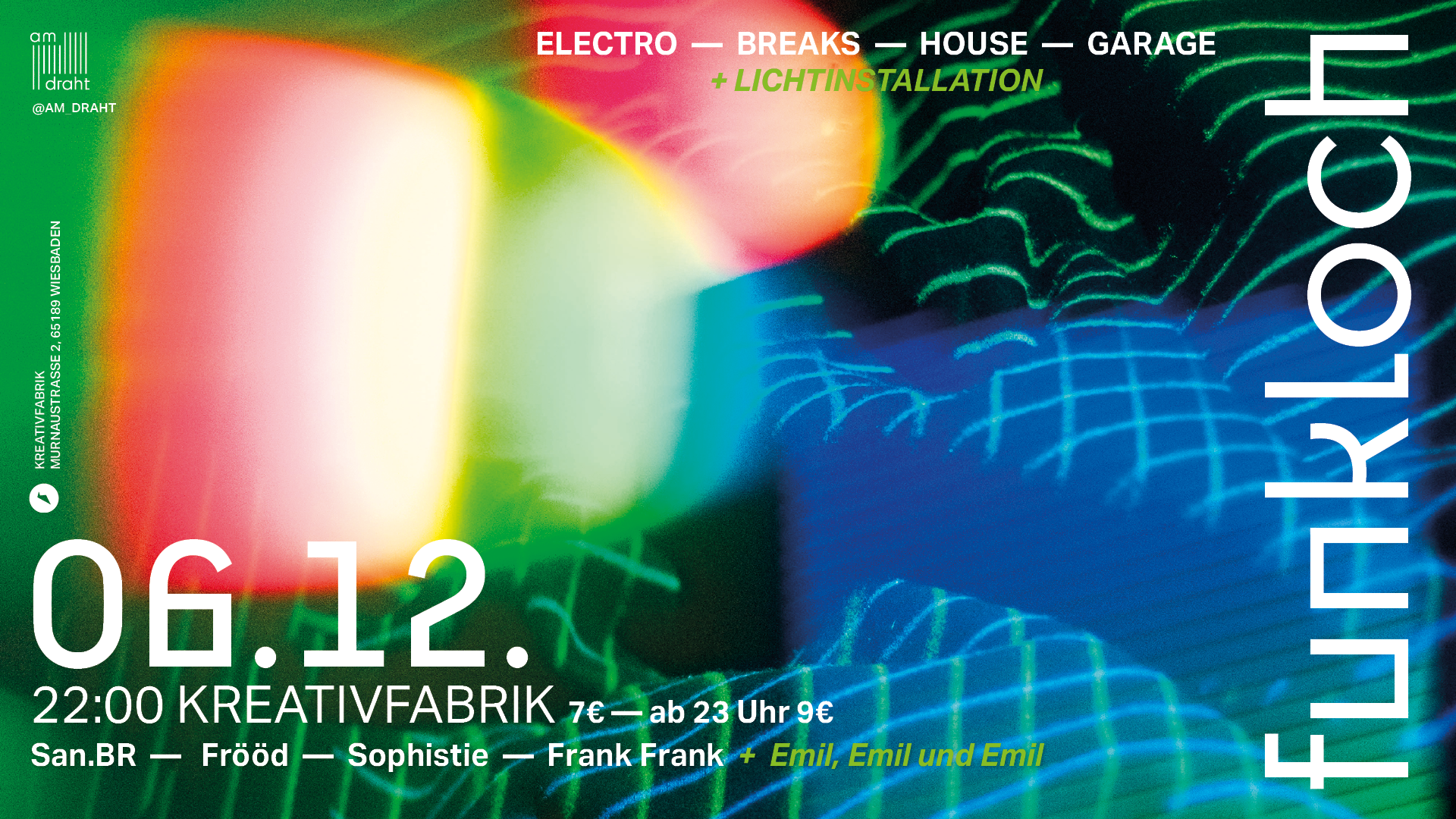 „Kollektiv Am Draht“ kommt in die Krea und präsentiert mit FUNKLOCH eine Mischung aus Lichtkunst und elektronischer Musik.